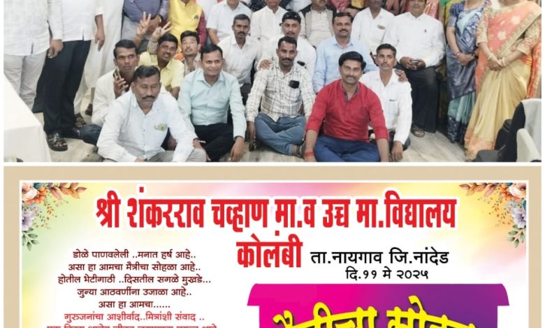 श्री शंकराव चव्हाण माध्यमिक व उच्च माध्यमिक विद्यालय कोलंबी येथील२००१ दहावी बॅच च्या विद्यार्थ्यांनी दोन तप पार पडल्या नंतर तब्बल २४वर्षा नी हॉटेल सिटी प्राइड नांदेड येथे मैत्रीचा अनोखा सोहळा नुकताच घेतला.