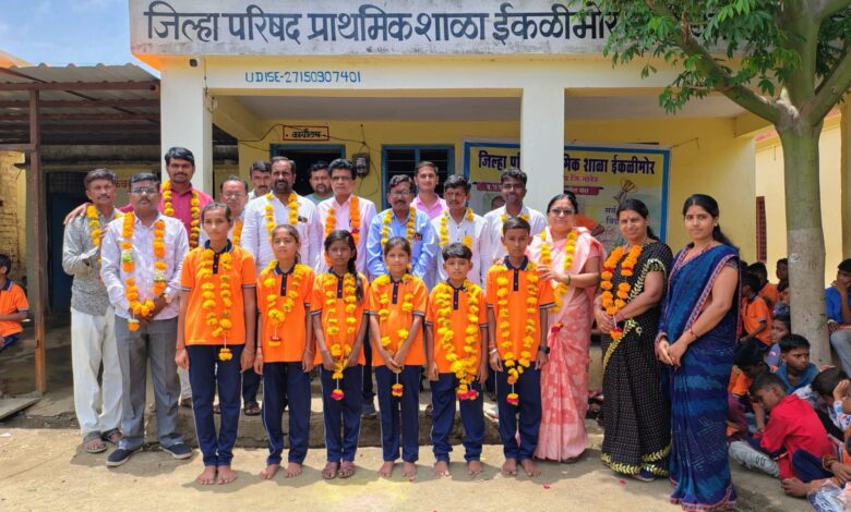 इकळी मोरे नायगाव तालुका येथील जिल्हा परिषद प्राथमिक शाळेत इयत्ता पाचवीचे विद्यार्थी शिष्यवृत्तीस पात्र ठरल्याबद्दल शाळेच्या वतीने त्यांचा गौरव सत्कार करण्यात आला.