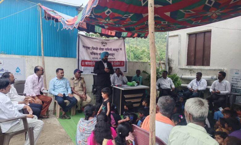 माहूर तालुक्यातील ग्रामपंचायत मेंडकी येथे जिल्हा विधी सेवा प्राधिकरणाच्या माध्यमातून व तालुका विधी सेवा प्राधिकरण माहूरचे वतीने कायदेविषयक जनजागृती मार्गदर्शन शिबिराचे आयोजन करण्यात आले होते. या कार्यक्रमाचे अध्यक्ष गावचे सरपंच अशाबाई हातमोडे होते तर प्रमुख उपस्थितीमध्ये माहूर पंचायत समितीचे विस्ताराधिकारी प्रदीप मुरादे, माहूर न्यायालयाचे गोवंदे, विधी तज्ञ एडवोकेट दिनेश येवूतकर,एडवोकेट एस पी कांबळे नांदेड जिल्हा विधी सेवा प्राधिकरणाचे एडवोकेट प्रदीप चव्हाण, बीट जमादार गेडाम, पत्रकार पंडित धुप्पे, ग्रामसेवक जाधव, मुख्याध्यापक लासुरे, शिक्षक मुनेश्वर, सामाजिक कार्यकर्ता सोनू तोडसाम यांची प्रमुख उपस्थिती होती यावेळी कायदेविषयक मार्गदर्शन एडवोकेट दिनेश येवूतकर, एडवोकेट प्रदीप चव्हाण, विस्ताराधिकारी प्रदीप मुरादे, पत्रकार पंडित धुप्पे, यांनी केले यावेळी गावातील धनलाल पवार, आश्रोबा चव्हाण, मोहन चव्हाण, बळवंत पवार, कुंदन पवार,प्रेम पवार, गायकवाड,मोरे,आनंद चव्हाण, मुरली पवार,वसंत चव्हाण, गौतम येरेकर,अशोक पवार, शिवदास चव्हाण, अनिल राठोड, प्रितीबाई राठोड यांच्यासह विद्यार्थी व गुरुजन वर्ग आणि गावकरी मोठ्या संख्येने उपस्थित होते कार्यक्रमाचे प्रस्ताविक आभार व सूत्रसंचालन एडवोकेट प्रदीप चव्हाण यांनी केले.