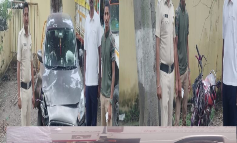 माहूर गडावरील श्री रेणुका माता मंदिर ते श्रीदत्त शिखर संस्थान कडे जाणाऱ्या रस्त्यावरील गरुड गंगा नाल्यावरील पुलाजवळ भाविकांची येणारी कार आणि मौजे दत्त मांजरी कडे जाणाऱ्या मोटर सायकल स्वाराची समोरासमोर धडक झाल्याने मोटर सायकल स्वार गंभीर जखमी होऊन त्याचा उजवा पाय कंबरे खालून मोडल्याची गंभीर घटना दि 5 रोजी दुपारी 3.40 वाजता घडली आहे. मौजे जोडगव्हाण ता मालेगाव जि वाशिम येथील भाविक आपल्या घरची कार क्रमांक एम एच 26 बी एक्स 4991द्वारे चालक चेतन गोवर्धन सोलव हे घरच्या मंडळींना घेऊन माहूर गडावर दर्शनासाठी आले होते शिखर संस्थांनचे दर्शन करून परत येत असताना गरुडगंगा पूला जवळील वळणावर मौजे दत्त मांजरी तालुका माहूर कडे जात असलेले परमेश्वर राऊत राजू पवार हे शारदा देवी विसर्जनासाठी कुंकू चा थैला घेऊन आपली मोटरसायकल क्रमांक एम एच 26 ए डब्ल्यू 64 14 वरून जात असताना वळणावर अचानक पणे समोर आलेल्या कारला मोटरसायकलची जोरदार धडक बसली यामध्ये परमेश्वर राउत खाली पडून त्याला गंभीर मार लागल्याने उजव्या पायाचा कमरेखालून हाड मोडला घटना कळल्याने पोलीस निरीक्षक गणेश कराड यांच्या मार्गदर्शनाखाली सपोनी शरद घोडके पोउपनि पालसिंग ब्राह्मण पोहेका गजानन चौधरी दत्ता सोनटक्के पवन राऊत संघरत्न सोनसळे होमगार्ड एस पी भगत यु बी भगत सलमान खान मजीद खान पी एस मुरकुटे शेख गणी यांनी धाव घेऊन जखमींना माहूरच्या ग्रामीण रुग्णालयात आणले . रुग्णालयात डॉ अक्षय सांगळे यांचे सहपरिचारिकांनी प्रथमोपचार करून 108 अंबुलन्स द्वारे पुढील उपचारासाठी जखमींना यवतमाळ येथे हलविले माहूर घाटात दिवसेंदिवस भाविकांच्या वाहनांची संख्या वाढत असल्याने तात्काळ रस्ता रुंदीकरनाचे काम हाती घ्यावे अशी मागणी होत आहे