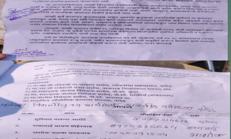 या सर्व प्रकारांबाबत अनेक वेळा तक्रारी, निवेदने, आंदोलन व उपोषण करूनही प्रशासनाने दखल घेतली नसल्याने आता “जगा किंवा मरा” अशा परिस्थितीत आपण आत्मदहनाचा निर्णय घेतल्याचे कामगारांनी नमूद केले आहे. दिनांक 10 जानेवारी 2026 रोजी आत्मदहन करण्याचा इशारा देत, त्याची संपूर्ण जबाबदारी संबंधित अधिकाऱ्यांवर राहील, असेही नोटीसमध्ये स्पष्ट करण्यात आले आहे.
