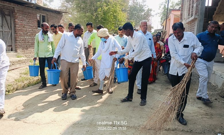यावेळी विस्तार अधिकारी लोखंडे यांनी मुख्यमंत्री समृद्ध पंचायत राज अभियानात ग्रा.पं. मार्फत राबविण्याबाबतचे सर्व उपक्रम व तालुका ते राज्य स्तरावर शासनातर्फे देण्यात येणाऱ्या पारितोषिकाबाबत सविस्तर माहिती दिली. पुढे बोलतांना साईनाथ महाराज म्हणाले की, मुंगीला जर दिल्लीला जायचे असेल तर अनेक महिने लागतील पण दिल्लीला विमानाने जाणाऱ्या एखाद्या व्यक्तीच्या खांद्यावर बसली तर काही तासात दिल्ली पोहचू शकते. त्यासाठी गावातील सर्व नागरिकांनी एकसंघ होऊन योग्य व्यक्तीचा हात धरून प्रयत्न केले तर वेळ कमी जरी असला तरी इच्छित ध्येय गाठता येते असे उदाहरण देऊन मुख्यमंत्री समृद्ध पंचायत राज अभियानात यशस्वी व्हावे ह्या ग्रा.प.ला शुभेच्छा व आशीर्वाद दिले. त्यानंतर देवा दत्ता दत्ता च्या गजरात संपूर्ण गावात स्वच्छता अभियान राबविण्यात आले. जी.प. प्रा. शाळेत विद्यार्थ्यांना स्वच्छतेचे महत्व पटवून देण्यात आले. कार्यक्रमास गावातील बहुसंख्य सुजान नागरिक, अंगणवाडी कर्मचारी, बचत गटाचे पदाधिकारी व सदस्य शालेय विद्यार्थी महिला व पुरुष व शिष्य मंडळी बहुसंख्येने उपस्थित होते. कार्यक्रमाचे प्रास्ताविक ग्रामपंचायत अधिकारी व्ही.एस. जाधव यांनी केले.